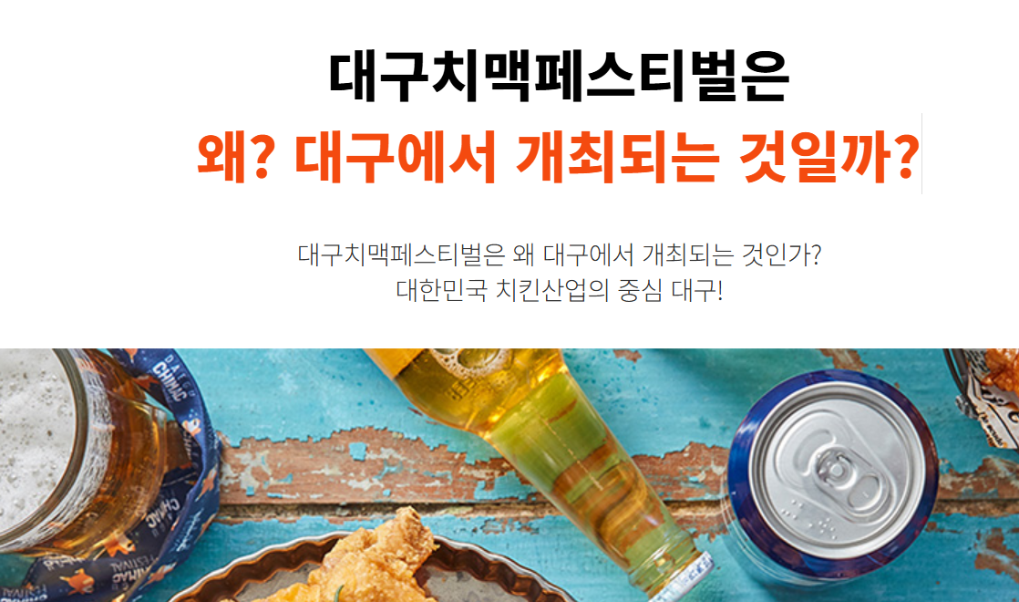 2025 대구치맥페스티벌, 여름밤의 축제 준비는 지금부터! 치킨과 맥주를 사랑하는 모든 분들을 위한 국내 최대 규모의 식음 축제, 대구치맥페스티벌! 올해는 또 어떤 특별한 즐거움이 기다리고 있을까요? 미리 준비하고, 제대로 즐겨봐요!