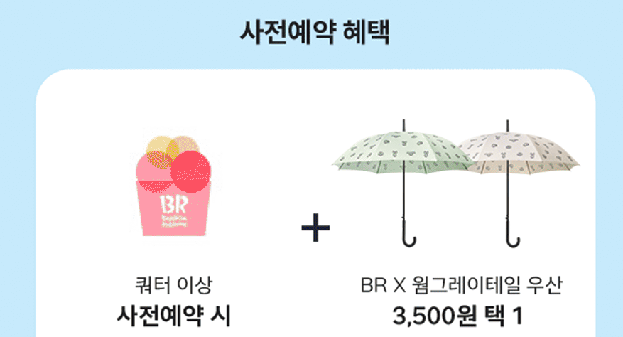 - 구매 조건: 전국 배스킨라빈스 매장에서 아이스크림 쿼터 사이즈(18,500원) 이상 구매 시, 3,500원에 구매 가능