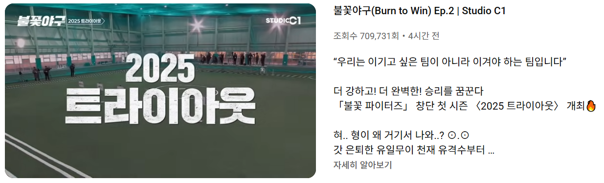 스튜디오 C1 관계자는 "방송사 선정은 이미 마무리 단계에 있으며, 최종 계약 조건과 편성 시간대 협의만 남은 상태"라고 밝힌 바 있습니다. 따라서 5월 초에는 불꽃야구 방송사가 공식 발표되고, 본격적인 예고편이 공개될 것으로 예상됩니다.