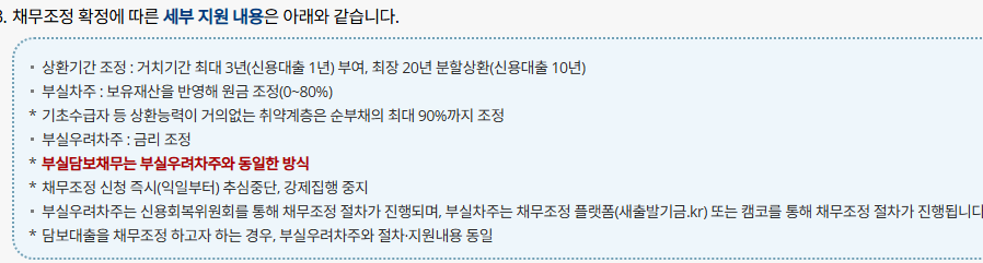- 주요 혜택: 원금 감면, 이자율 조정, 상환 유예