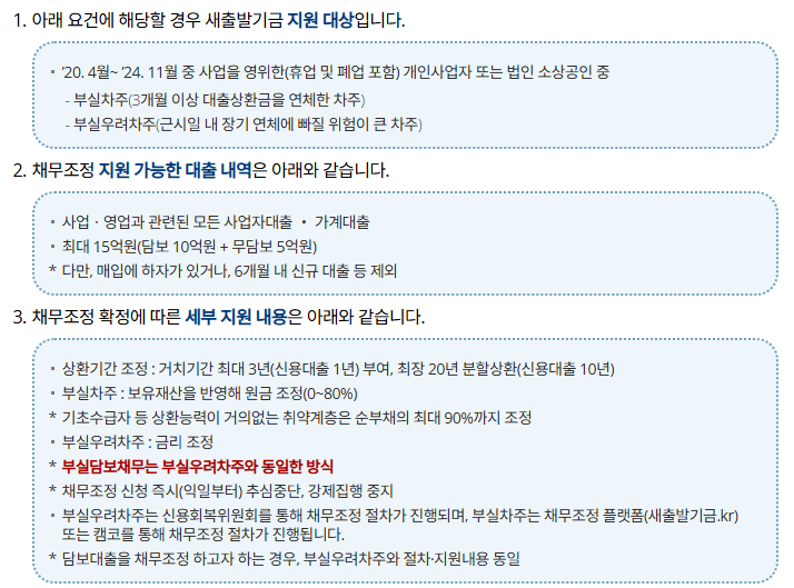 휴업, 폐업 위기에 놓인 사장님들을 위한 새출발기금은 정말 희망 같은 존재라고 생각해요. 다시 한번 핵심 내용을 정리해볼까요?