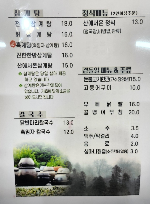 1. 다른 메뉴 시도: 흑임자 삼계탕 외에 혹시 다른 특별한 삼계탕이나 사이드 메뉴가 있다면 함께 주문해 보세요. 새로운 맛의 조합을 발견할 수도 있습니다.