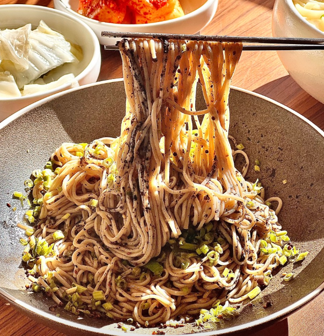 - 면 삶기: 메밀면 또는 소면을 삶아 찬물에 헹군 후 물기를 빼줍니다.