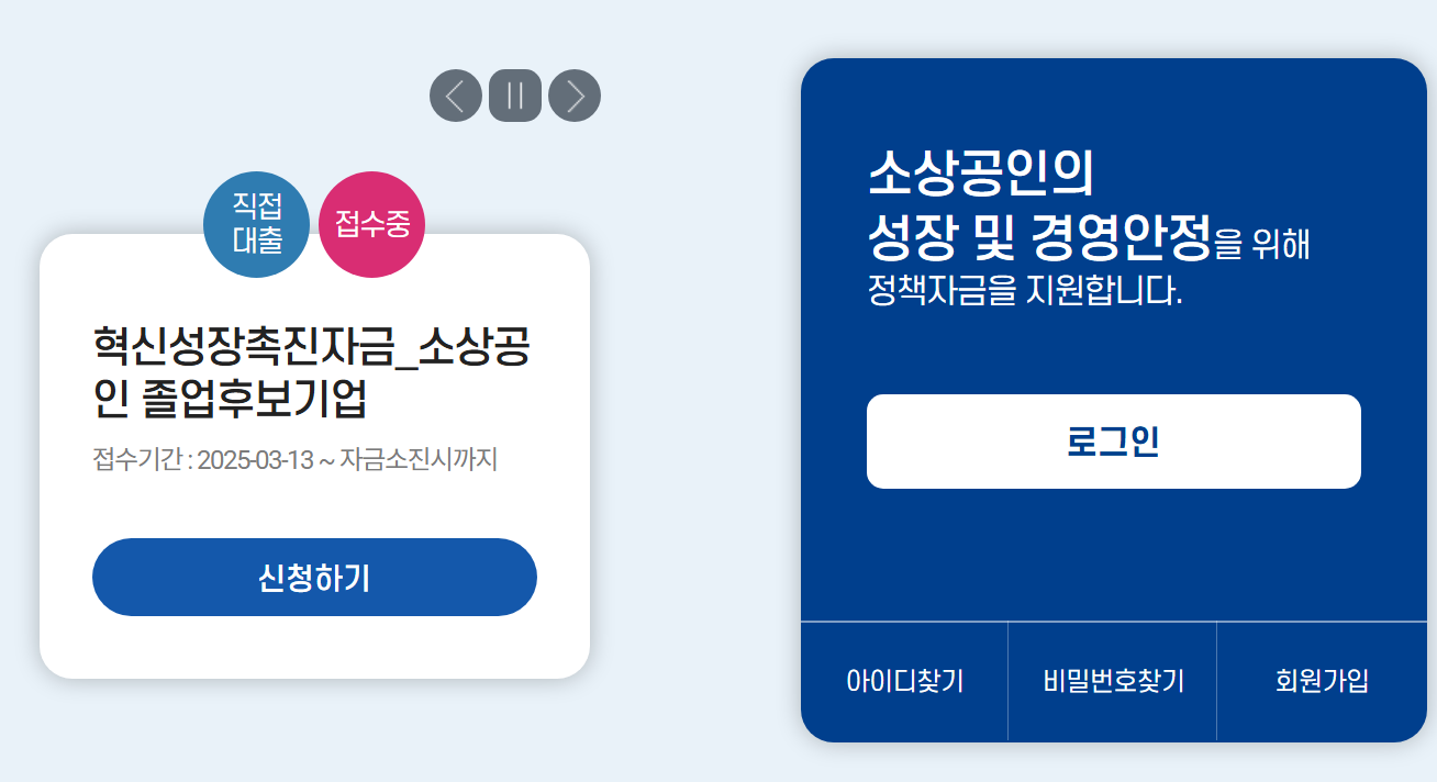 소상공인정책자금 공식 신청 홈페이지