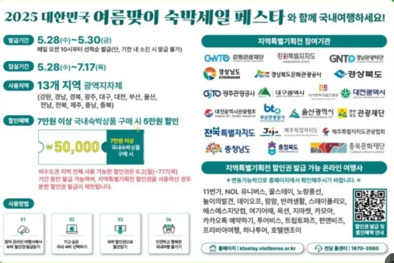 제주도가 한국관광공사, 제주도관광협회와 함께 진행하는 특별 할인 이벤트예요. '2025 대한민국 여름맞이 숙박세일 페스타' 지역특별기획전의 일환으로, 여름 성수기 전에 관광객들에게 혜택을 주려는 취지입니다.
