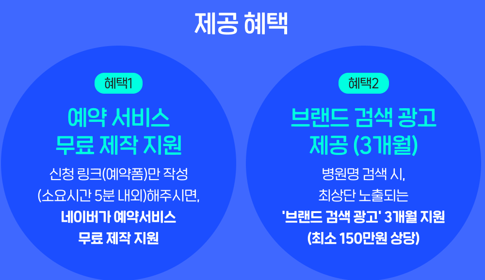 - 사전 신청 및 혜택: 6월 10일부터 30일까지 사전 신청을 받으며, 신청 병원에는 맞춤형 네이버 예약 페이지 무료 제작 및 다양한 추가 혜택이 제공됩니다.