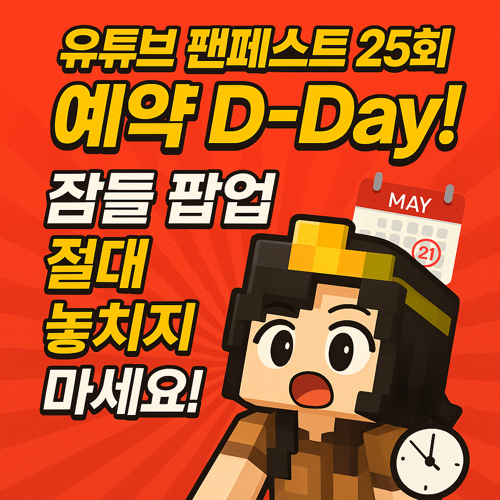 유튜브 팬페스트 25회 팝업 예약, 이제 걱정 없죠? 5월 21일 예약 오픈, 6월 13일~15일 성수동 팝업, 그리고 제가 알려드린 예약 꿀팁까지! 이 모든 정보를 잊지 마시고, 꼭 꿈뜰이 잠뜰님 만나러 가세요! 😊