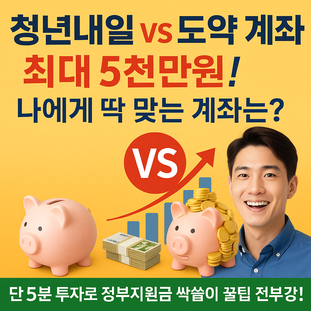 청년내일저축계좌와 청년도약계좌, 어떤 걸 선택해야 할지 고민이셨죠? 더 이상 시간 낭비하지 마세요! 이 글 하나로 여러분의 상황에 딱 맞는 계좌를 찾아 최대 수천만 원의 목돈을 마련할 수 있는 핵심 비교 정보와 전문가의 꿀팁을 얻어가실 수 있습니다. 지금 바로 확인하고 미래를 위한 현명한 선택을 시작하세요! 이 정보를 놓치면 정부 지원금을 받을 기회를 놓칠 수도 있습니다.