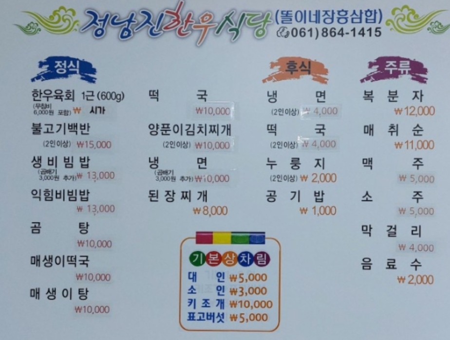 | 상차림비(1인) | 4,000~5,000 | 반찬, 찌개 포함 |