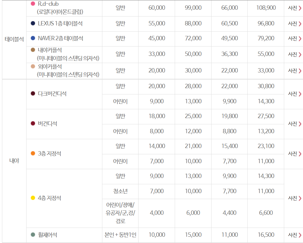 | 테이블석 | 30,000~70,000 | 최고 시야, 편안한 좌석 | VIP 경험 |