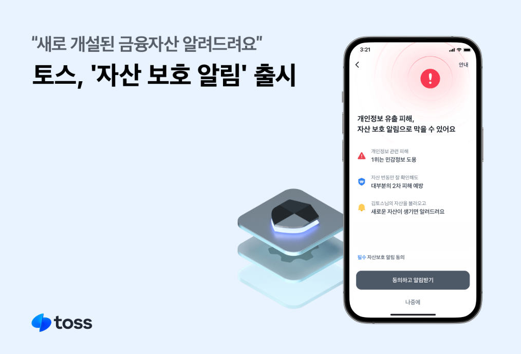 토스의 '자산 보호 알림' 서비스는 2025년 5월 21일에 새롭게 출시된 서비스예요. 간단히 말하면, 내 이름으로 새로운 금융상품이 개설되면 즉시 알려주는 서비스입니다.