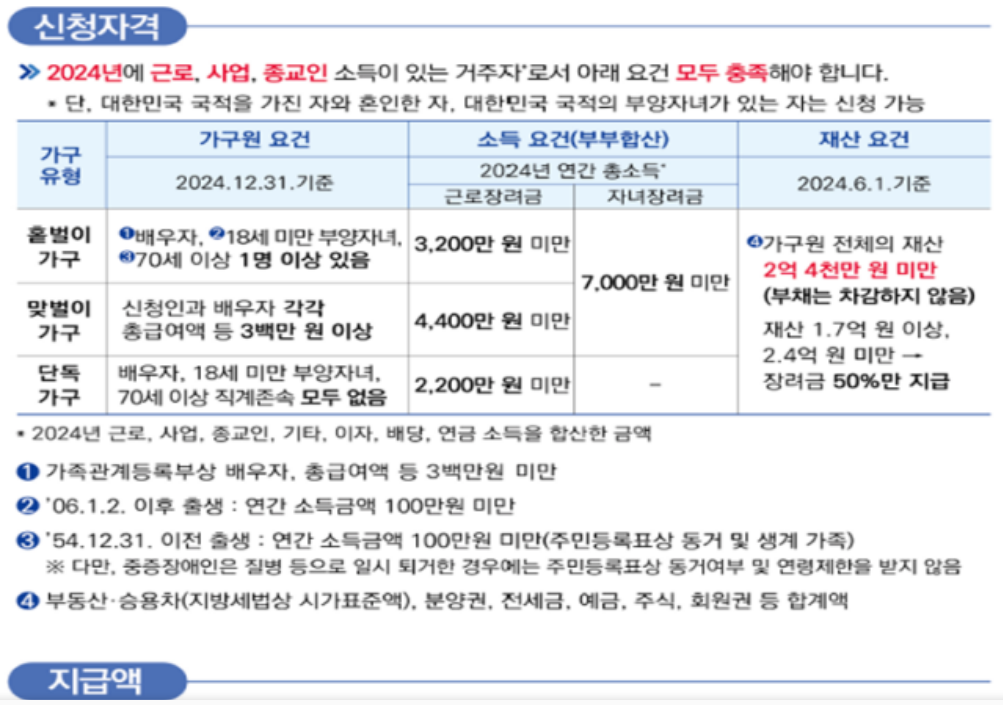 가구원 전체 재산 합계 2억4천만원 미만이어야 해요. 부채는 차감 안 해요. - Q. 자녀장려금도 받을 수 있나요?