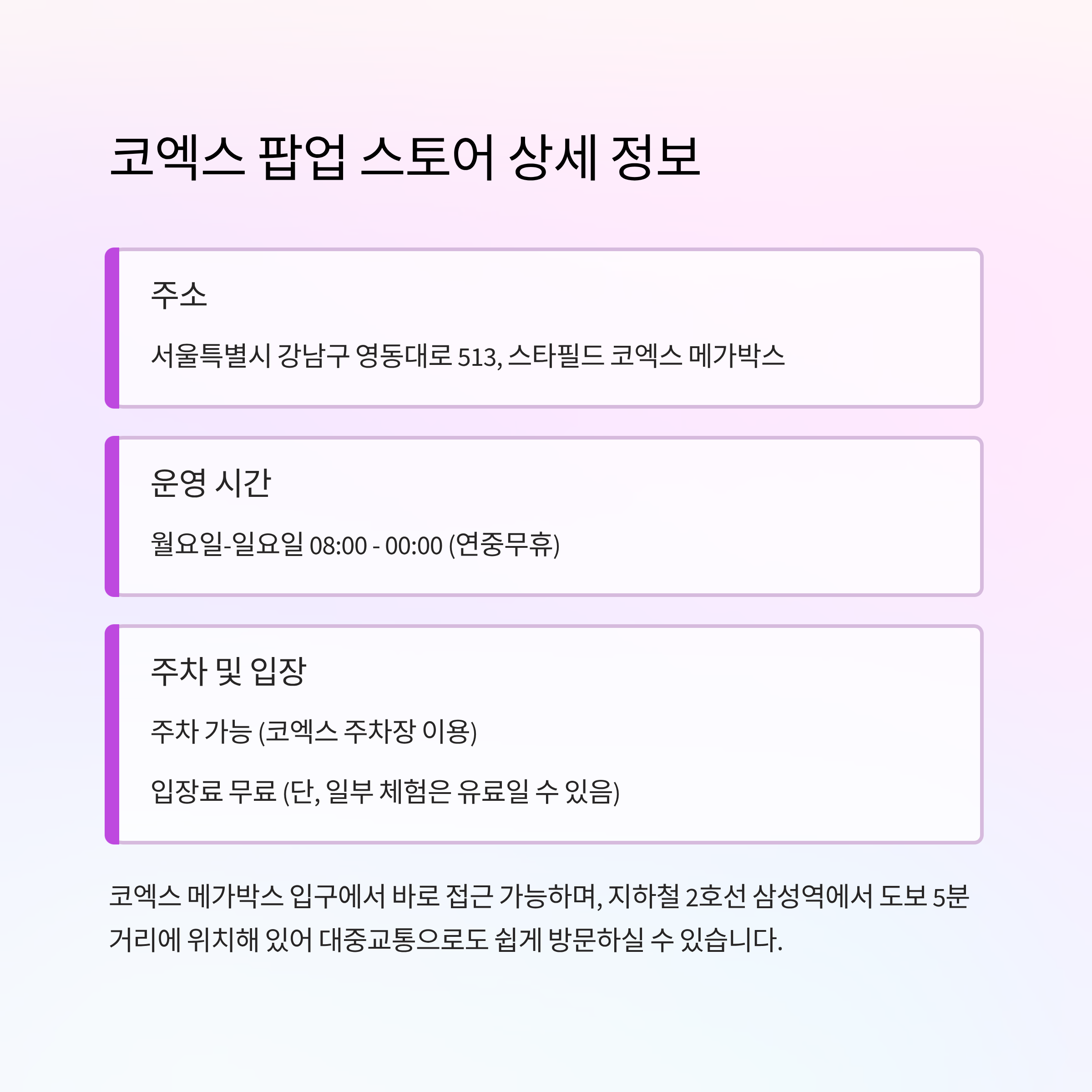 특히 스타필드 코엑스 메가박스 앞 팝업 스토어에 대한 자세한 정보도 알려드릴게요.