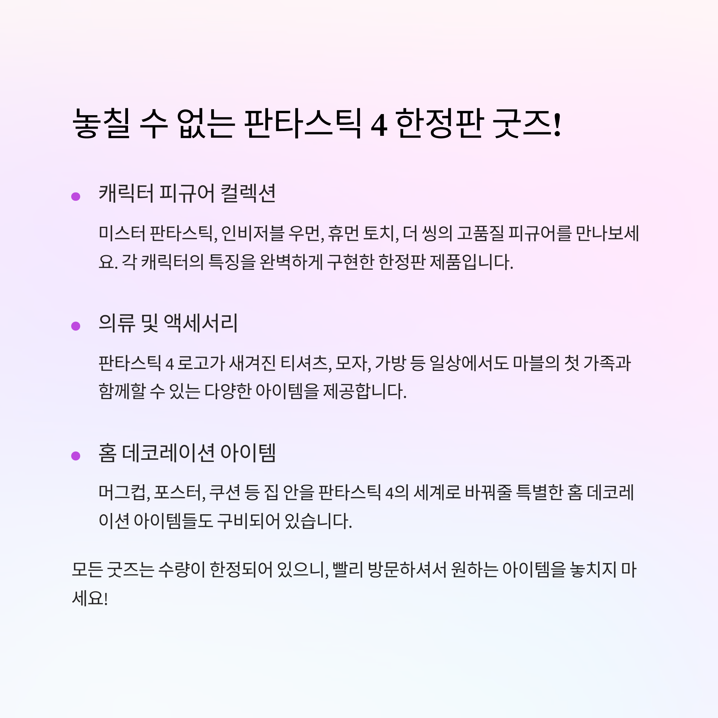 🛍️ 3. 놓칠 수 없는 판타스틱 4 굿즈! (예상 품목)
