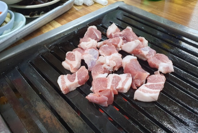 2. 연탄불에 굽는 덩어리생고기 13,000원
