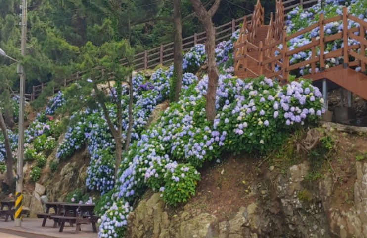 - 특징: 여름꽃 수국과 아름다운 거제 해안의 조화