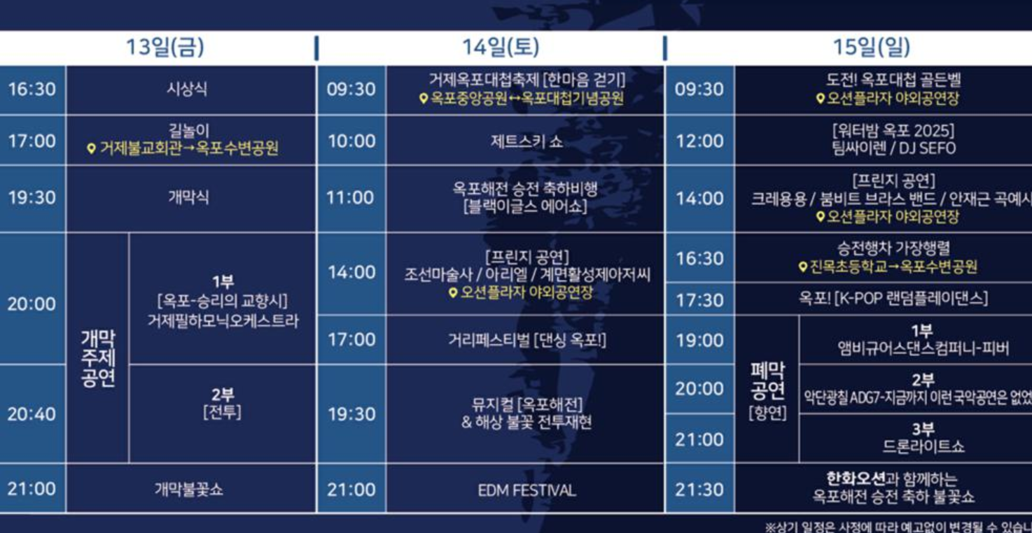- 행사 장소: 거제시 옥포수변공원 일원