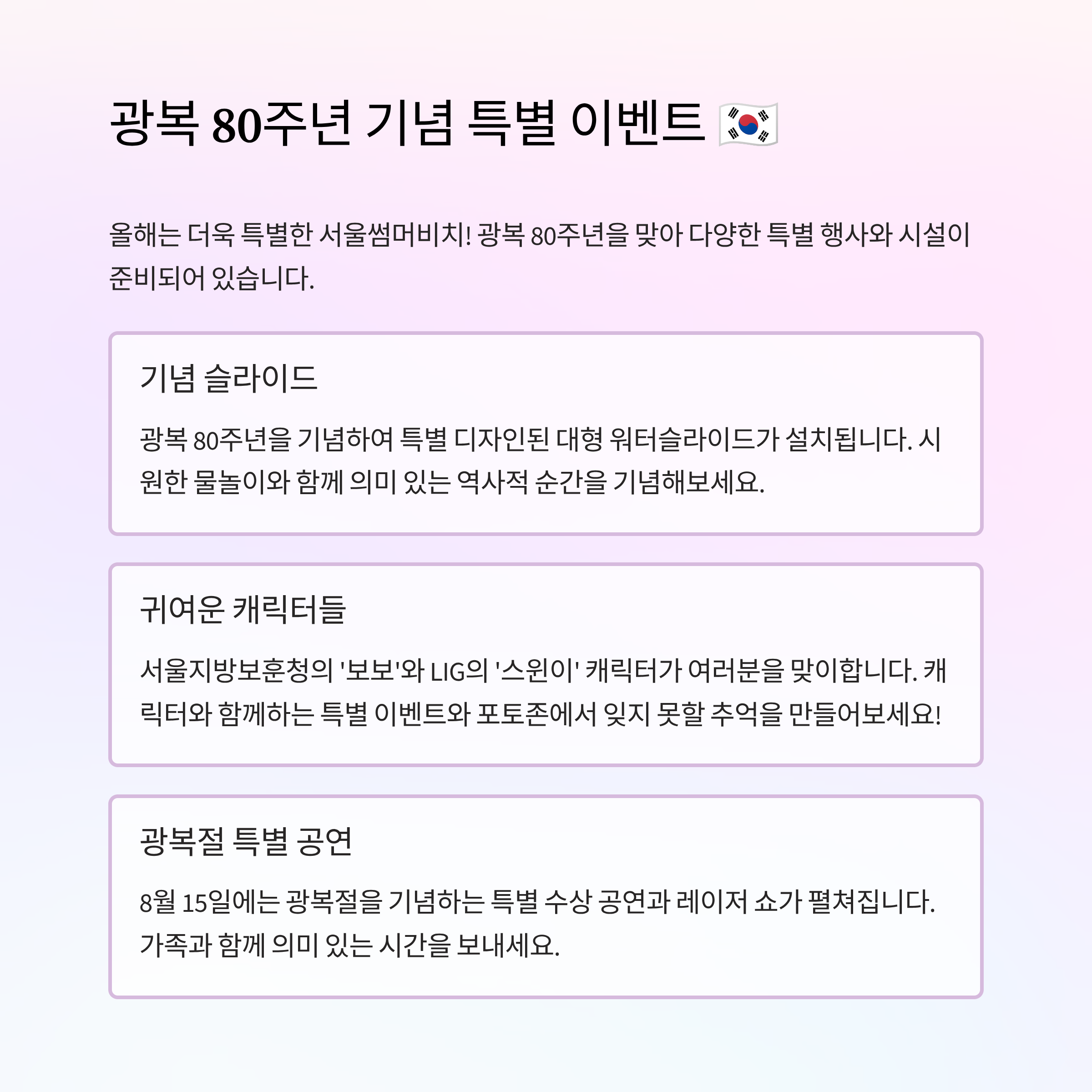 ✨ 광복 80주년 기념, 물놀이 속 특별한 의미!