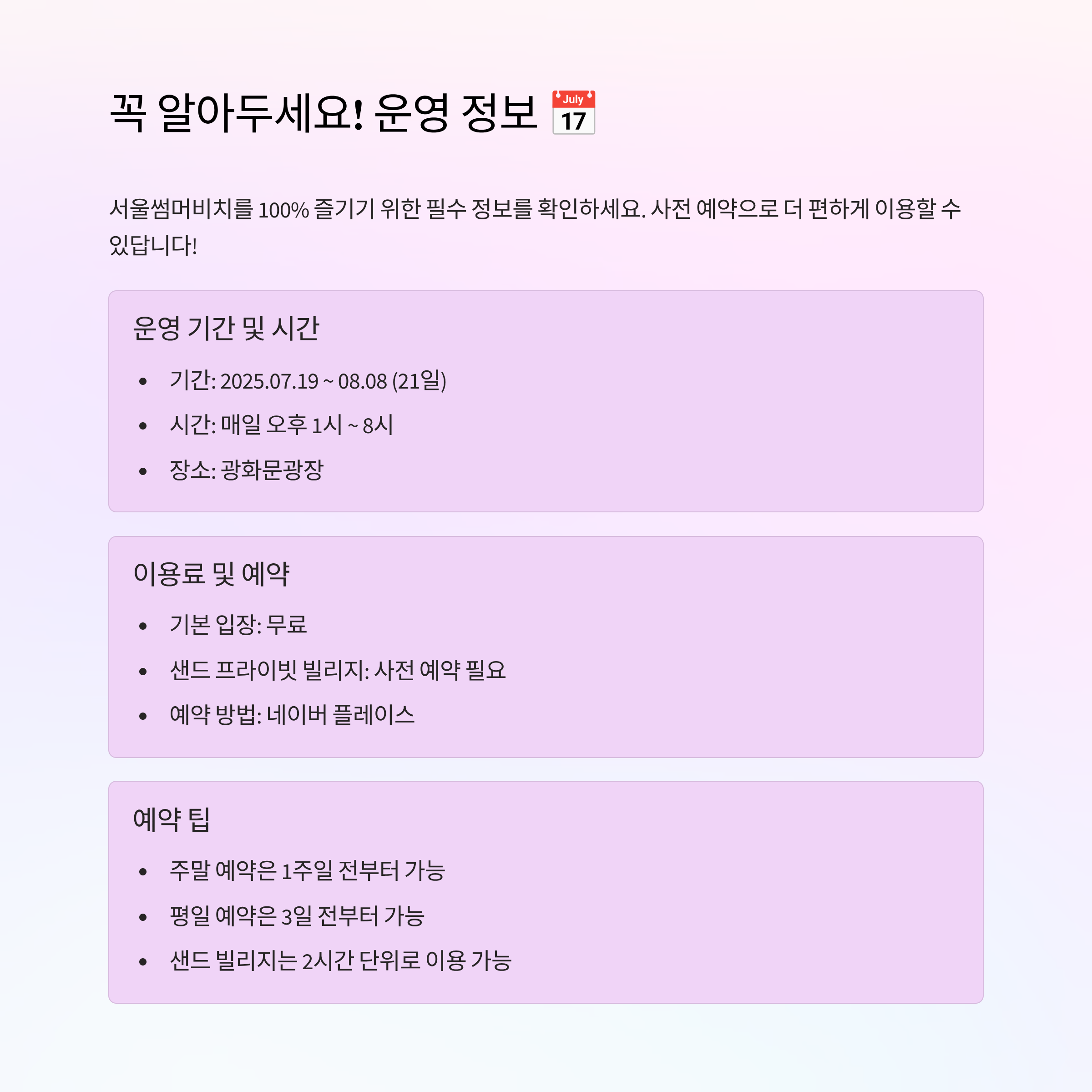 🎯 광화문 서울썸머비치 2025 개장일과 사전예약 꿀팁! 도심 속 해변 즐기기
