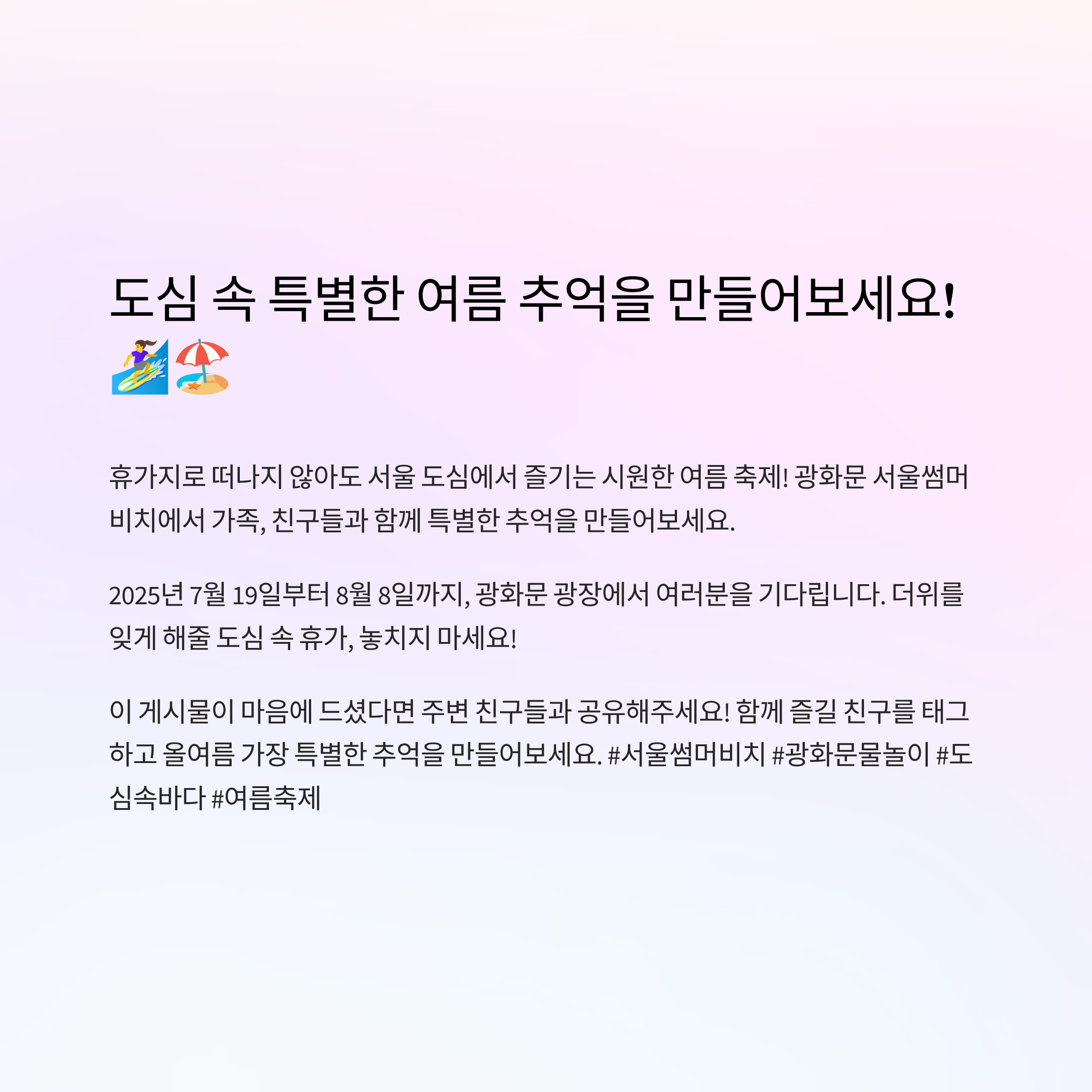 🎉 더위를 날려버릴 광화문 서울썸머비치, 꼭 방문해보세요!
