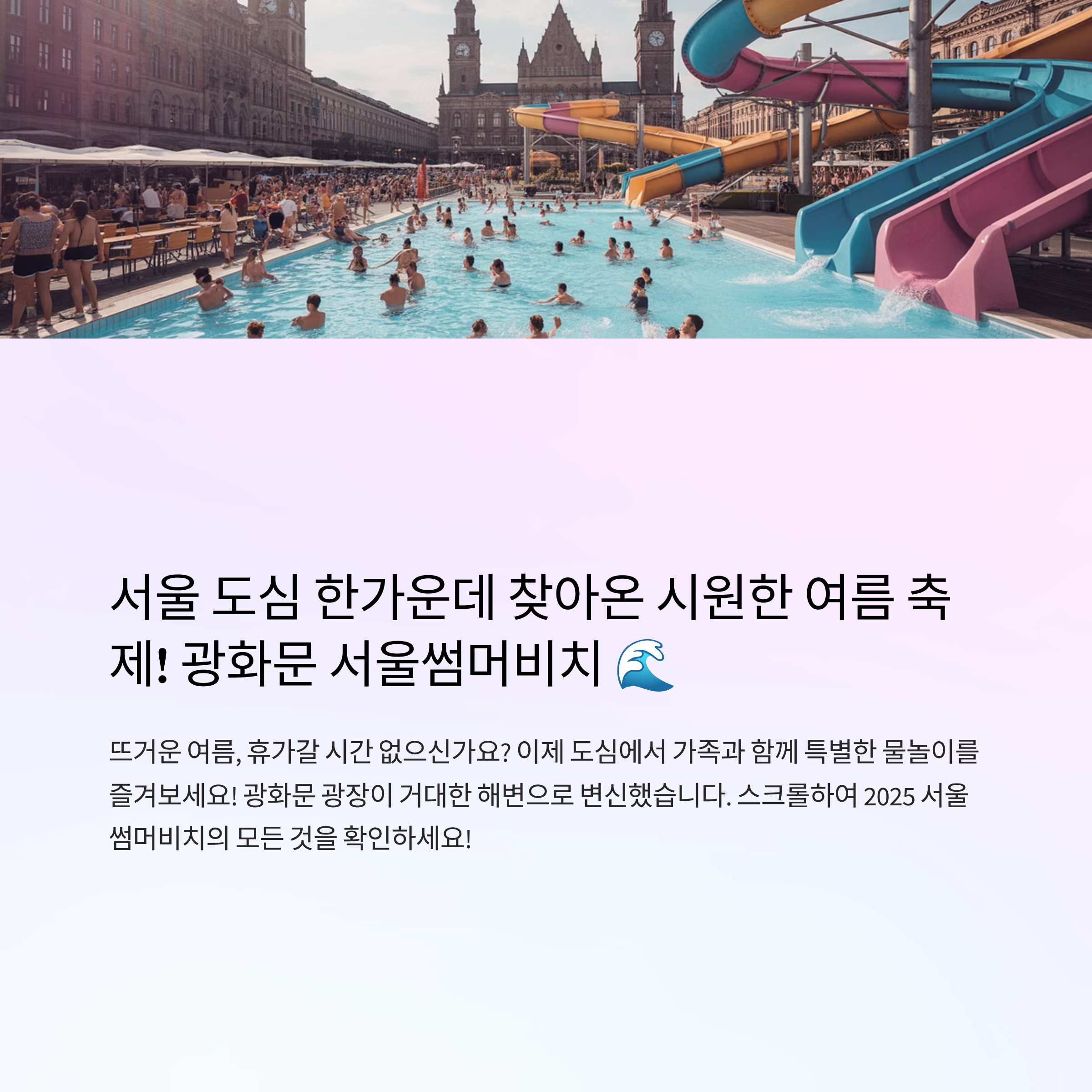 #서울썸머비치, #광화문물놀이장, #광화문광장, #서울여름축제, #여름방학, #서울가볼만한곳, #도심속피서, #물놀이명소, #수영장개장, #광복80주년, #가족나들이, #무료수영장, #샌드프라이빗빌리지, #서울여행, #꿀팁