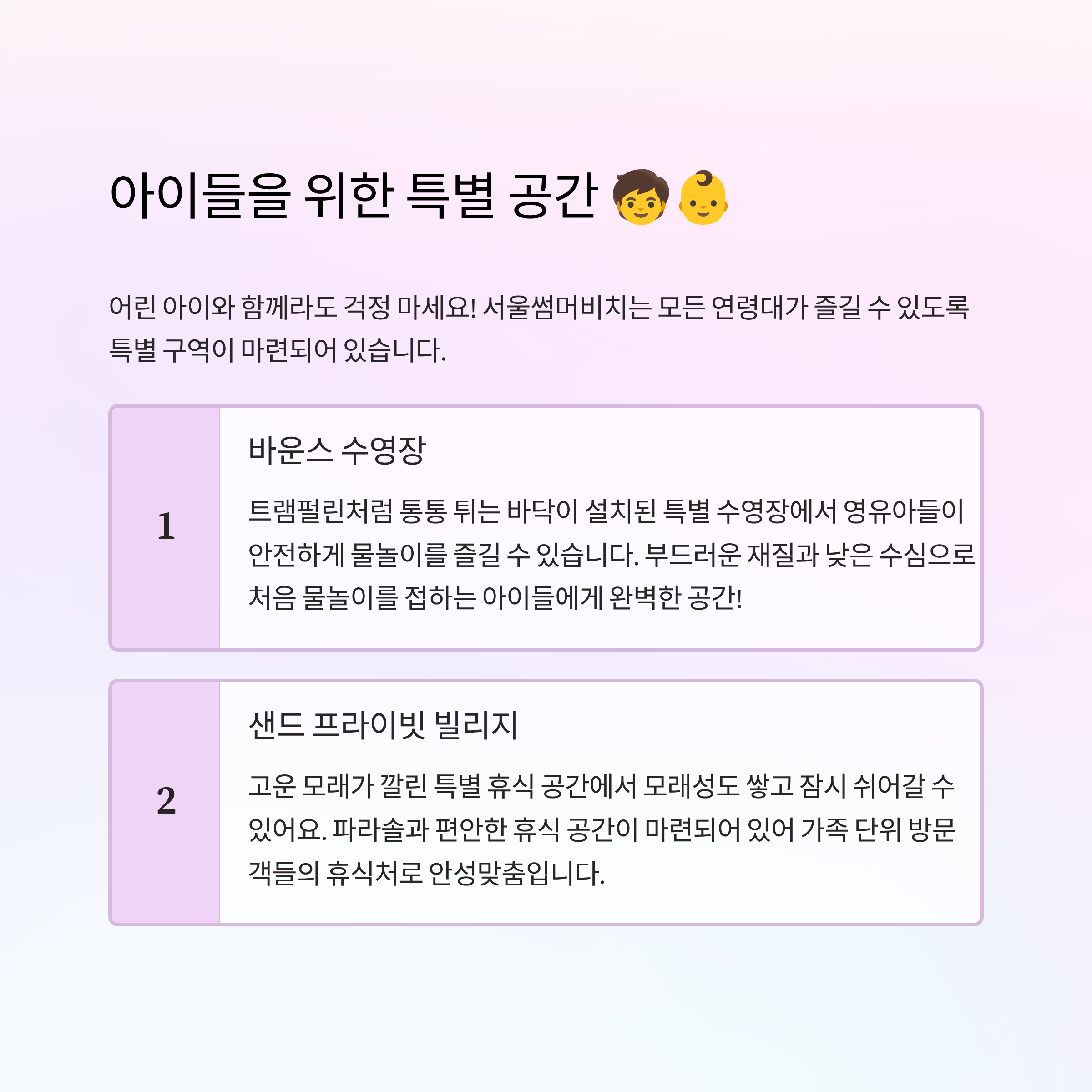 2. 시설 규모 증대: 대형 수영장 2동, 다양한 슬라이드, 영유아 바운스 수영장까지!