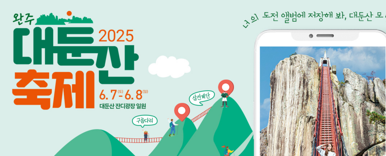 완주 대둔산 축제: 너의 도전, 대둔산 모먼트에 저장! ⛰️📸 2025년 완주 대둔산 축제는 등산대회, 하이킹, VR 체험 등 다양한 프로그램으로 모험과 힐링을 동시에 선사합니다. 대둔산의 비경 속