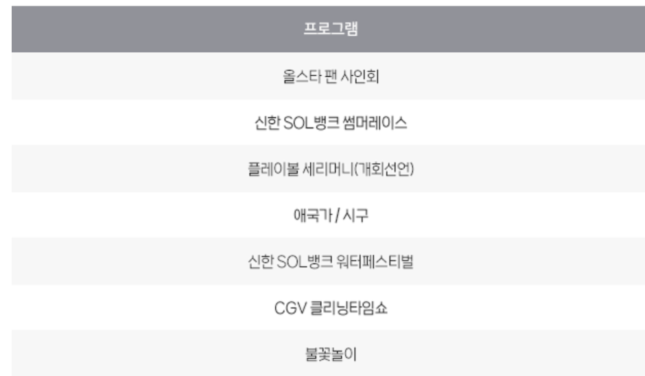 - 다채로운 팬 참여 이벤트: 사인회, 포토존, 응원 이벤트 등 팬들이 직접 참여하고 선수들과 소통할 수 있는 다양한 프로그램들이 준비되어 있습니다.