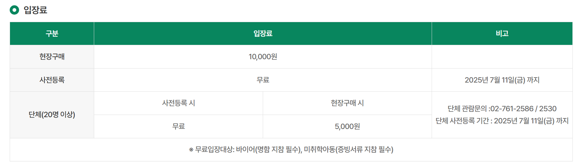 - 무료 입장 팁: 7월 11일(금)까지 사전등록하면 무료로 입장할 수 있으니 꼭 기억하세요!